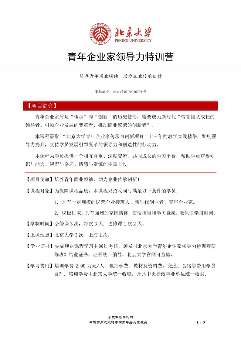 北京大学青年企业家领导力特训营