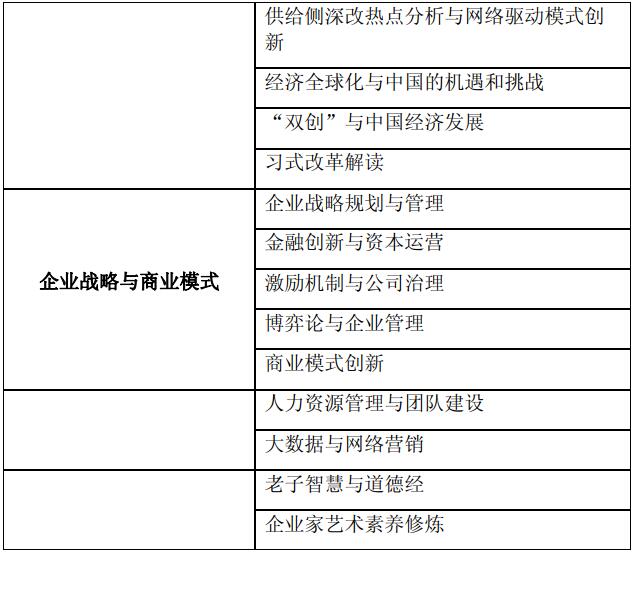 国际视野、前沿课堂:汇聚国内外最优秀的经济学家、管理学家、金融学家,从国际视野,实时分析国际国内经济、政策形势、汲取前沿管理理念,掌握企业发展命脉。同时融汇东西方文化,贯通人文、商道,实现卓越企业家的自我超越。