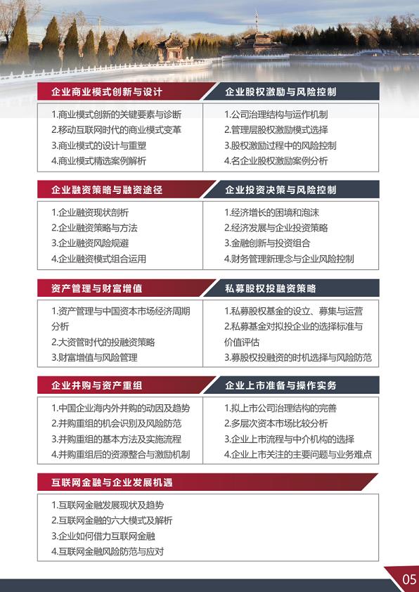 当前位置:北京大学总裁研修班 >> 培训课程 >> 北京大学金融私募与资本运作课程 >> 浏览文章