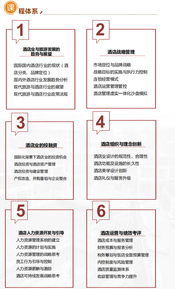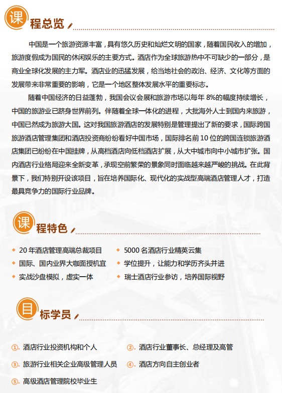 招生对象酒店行业投资机构和个人,酒店行业董事长、总经理及高管,游行业相关企业高级管理人员,店方向自主创业者,级酒店管理院校毕业生。